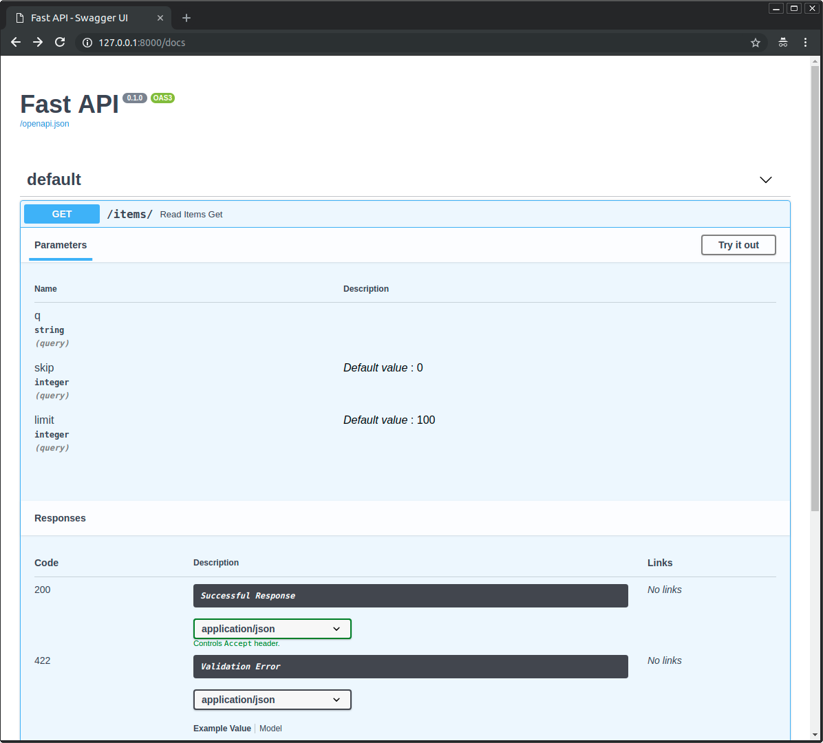 • 类型为 int 的可选查询参数 limit,默认值是 100